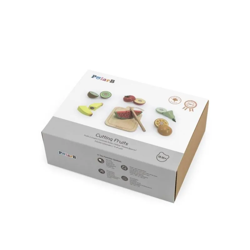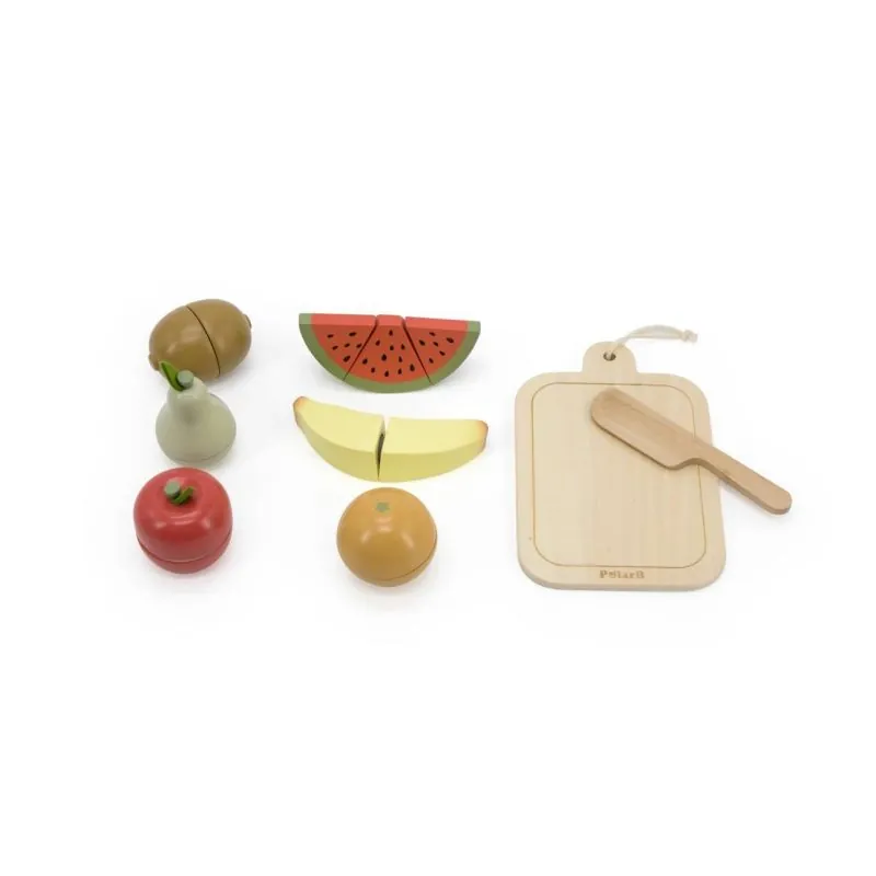 Lieliska rotaļlieta, kas rosina jūsu bērna iztēli;Šīs koka rotaļlietas, kas veidotas kā dažādi augļi, var izmantot arī kā vizuālos līdzekļus grupu aktivitātēs un mājās;Kamēr vecāki gatavo maltīti visai ģimenei, mūsu mazais pavārs vai pavāre sagatavos augļu salātus ar iecienītākajiem piedevām savām lellēm un lācīšiem;Pateicoties drošajam koka nazim, bērni var viegli "sagriezt" arbūzu, banānu vai apelsīnu;Spēlējot kopā, vecāki var iemācīt saviem bērniem, kā nākotnē izmantot asus virtuves rīkus;Papildu priekšrocība ir tā, ka visi produkti ir savienoti ar "Velcro" uzlīmēm, nodrošinot nebeidzamu izklaidi;Visi tie izskatās izsmalcināti un reālistiski. Sagriežot tos, var atkal savienot;Dārzeņu griešanas dēļu komplekts patiks pirmsskolas vecuma zēniem un meitenēm;Koka augļi var dažādot lomu spēles, papildināt spēļu virtuves un palīdzēt bērniem apgūt vienkāršu ēdienu gatavošanu;Bērni kļūst komunikabli, radošāki un pārliecinātāki par sevi;Šis komplekts attīsta sociālās prasmes, attīsta smalko motoriku, domāšanu un iztēli;